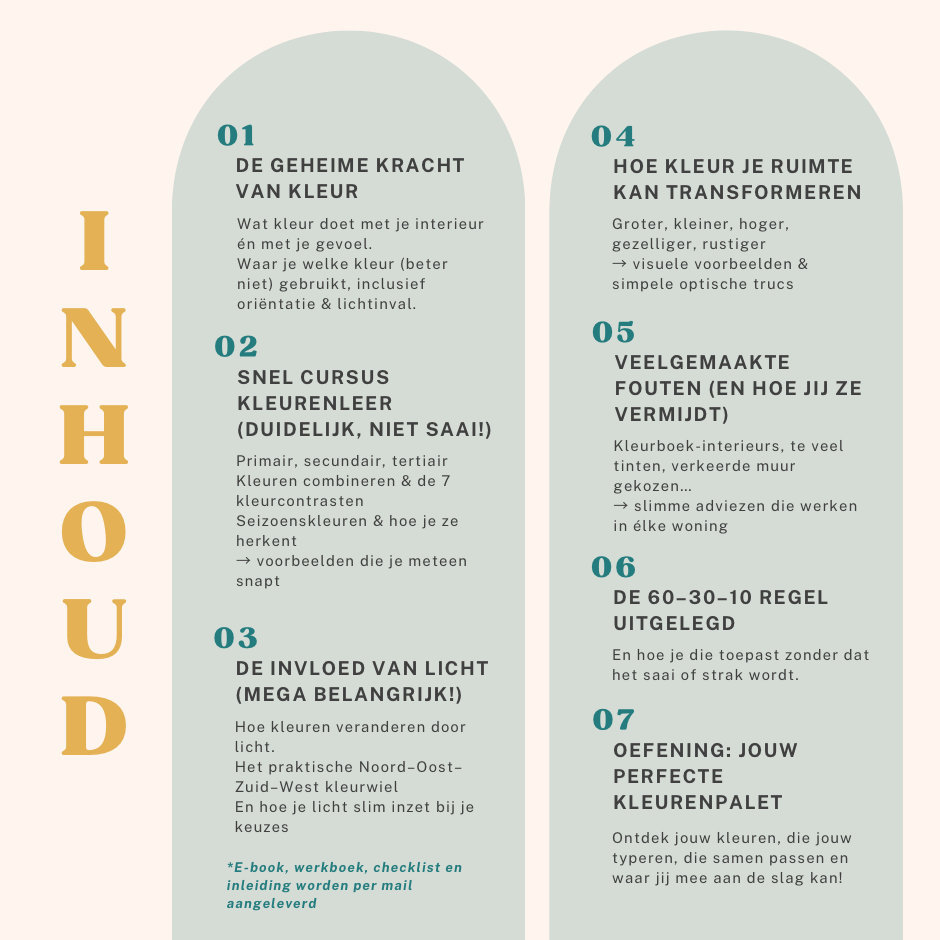 Je leert niet alleen de theorie, maar krijgt praktische tools en inspiratie om direct aan de slag te gaan. Perfect als je klaar bent om je ruimte echt te transformeren.